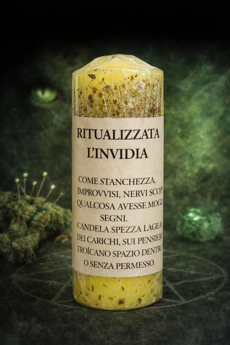 La candela ritualizzata contro l’invidia e il malocchio viene preparata con erbe selezionate per spezzare e disperdere le influenze cariche, lavorando su due livelli: